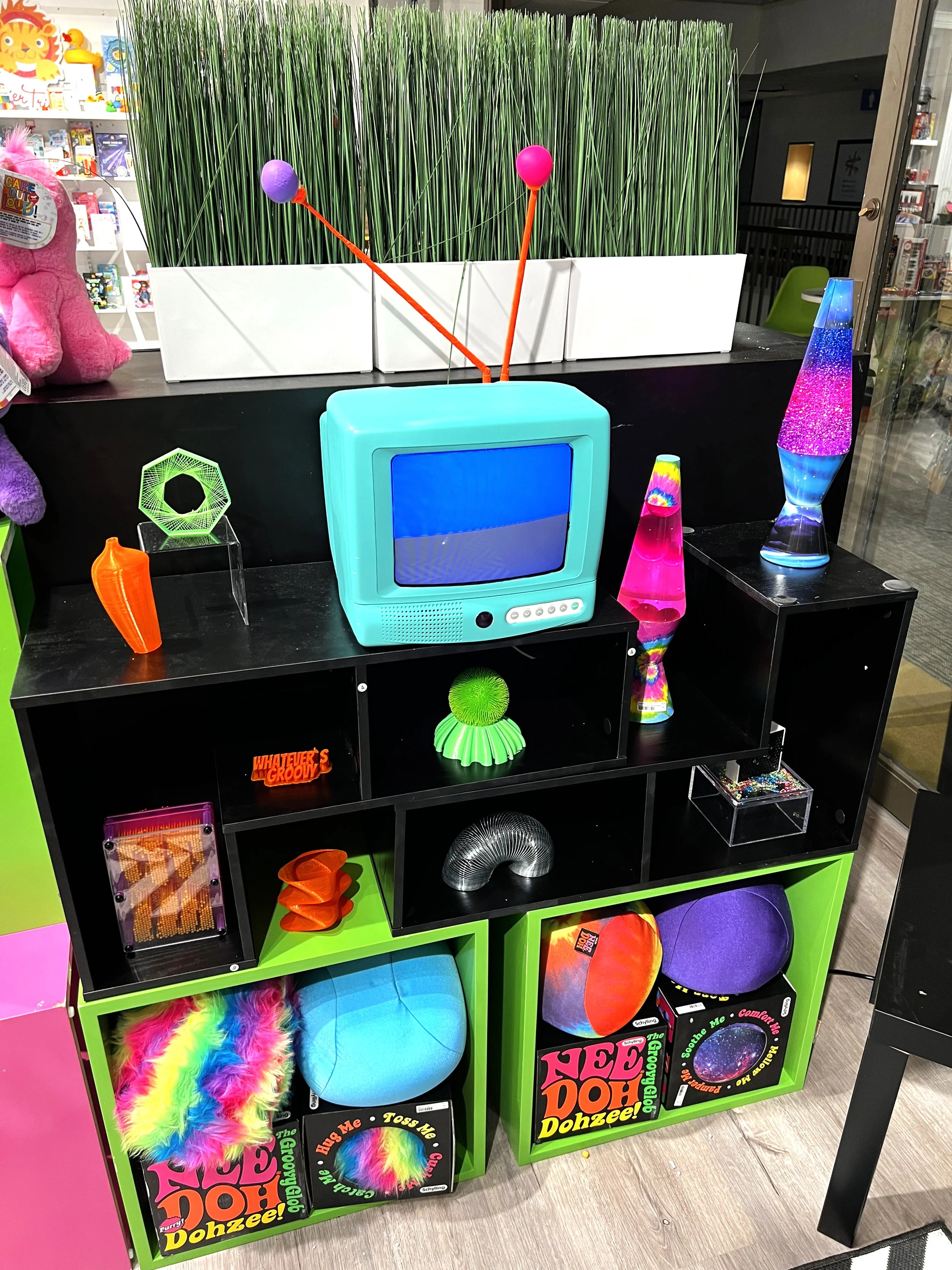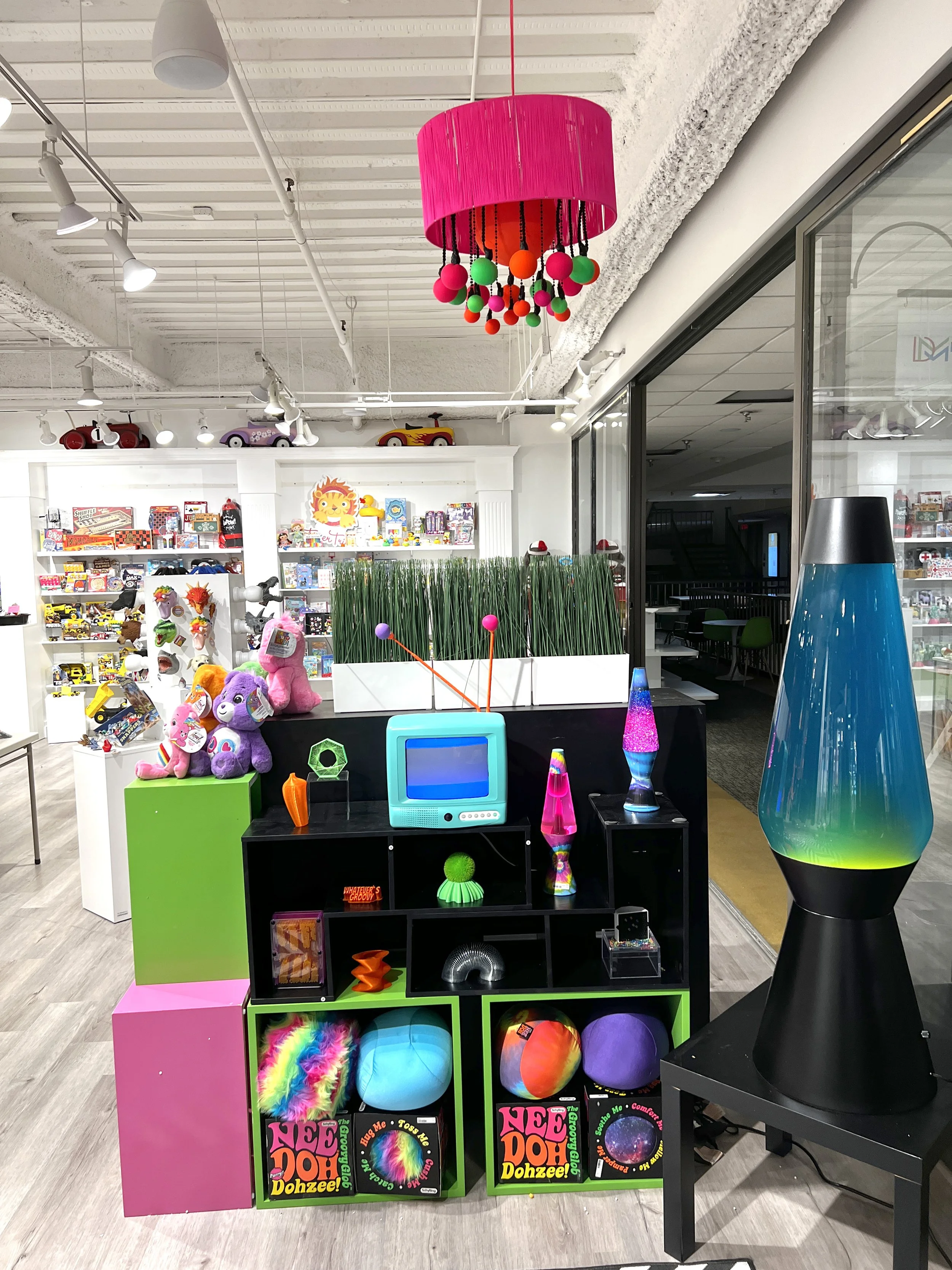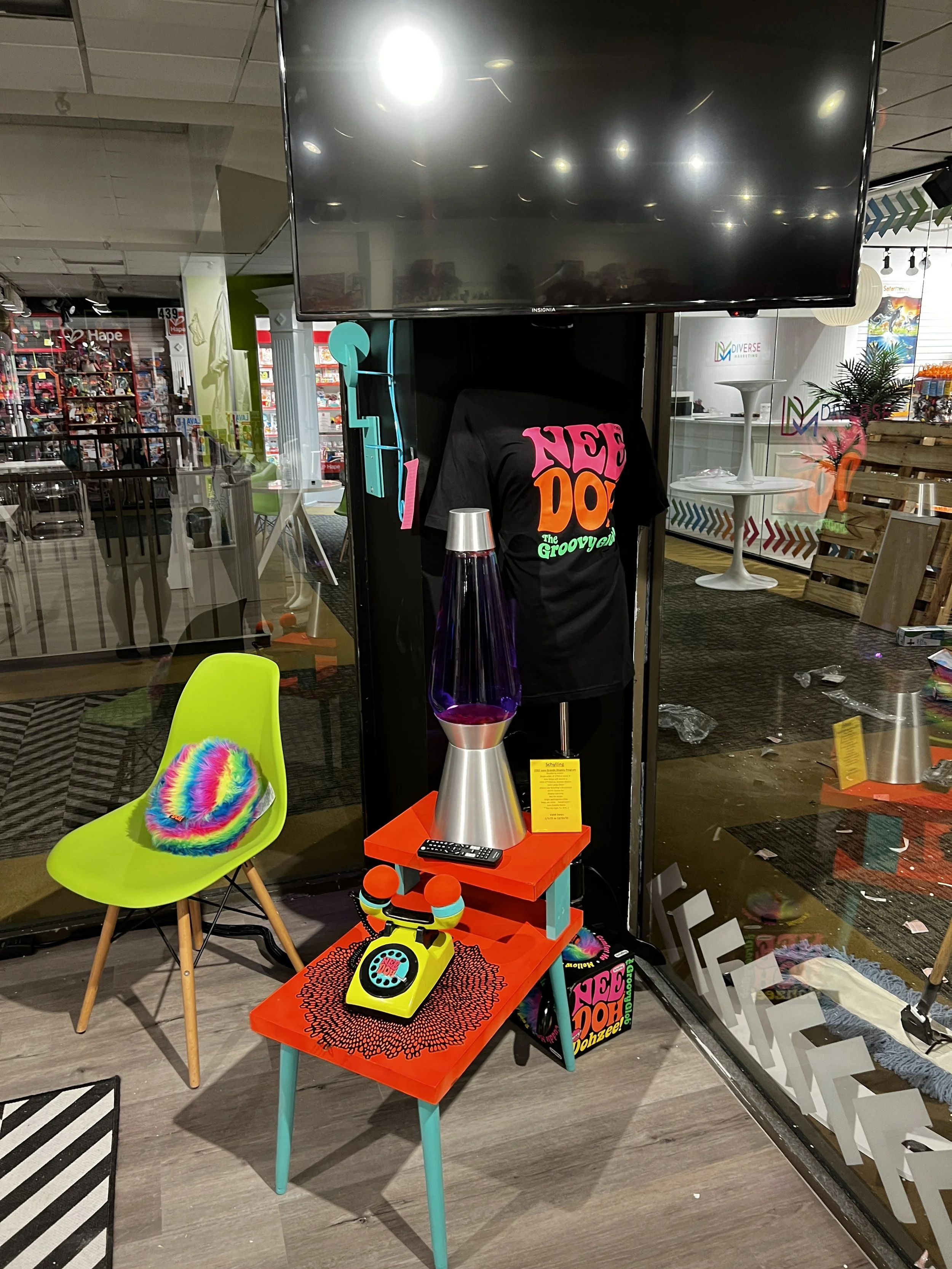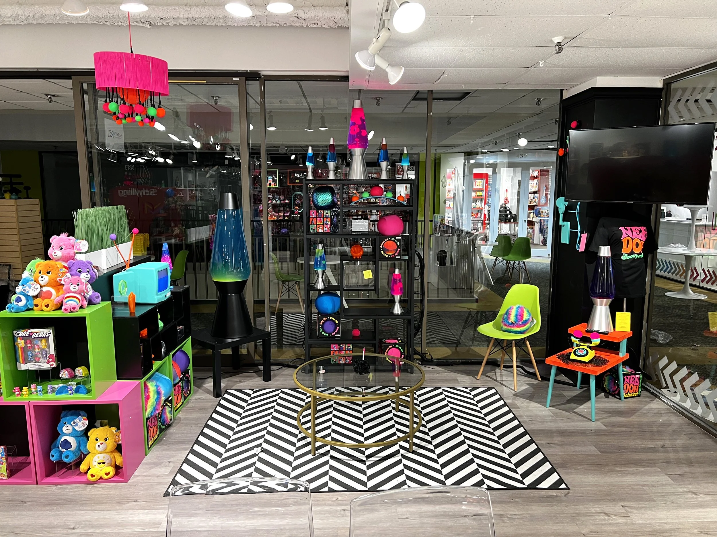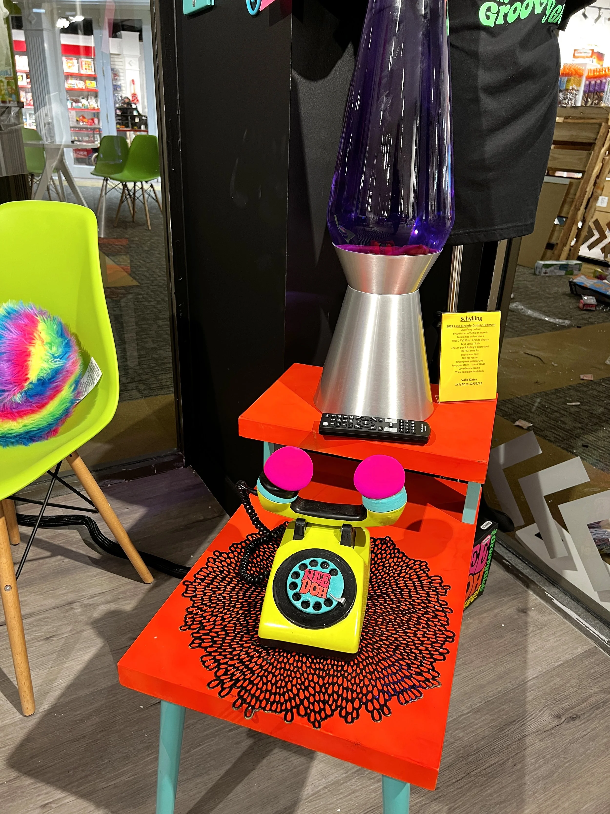 The Groovy Lounge was conceived as a place for sales to sit with customers and pitch, while being immersed in the NeeDoh and Lava brands